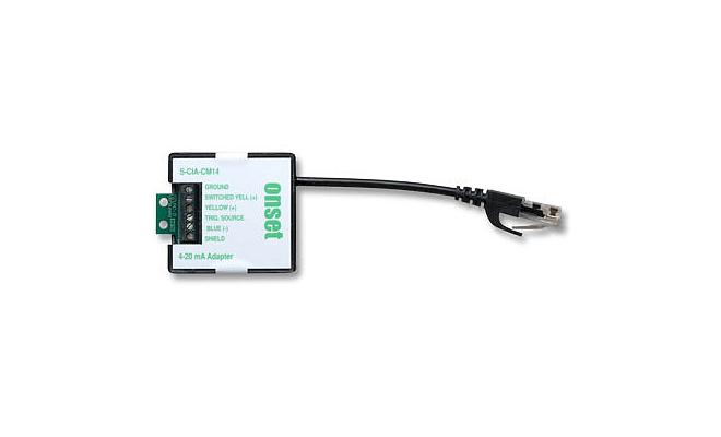 Interfaces with any sensor providing a 4-20 mA signal to connect to HOBO stations compatible with Smart Sensors. This adapter features both a non-switched input and a battery-saving switched input that extends the life of external batteries. It also provides a trigger signal for controlling power to attached external sensors, while offering digital filtering that improves measurement accuracy with 32 readings/sample and 60 Hz noise rejection.