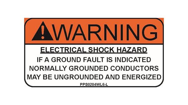 Panduit PPS0204WL6-L Warning: Electrical Shock Hazard If A Ground Fault Is Indicated with Caution Symbol Solar Label, 2.00" H x 4.00" W, Warning