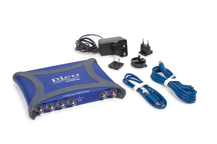 Maximum sampling rate (real time, 8-bit mode): 5 GS/s on 1 channel, 2.5 GS/s on 2 channels, 1.25 GS/s on 3-4 channels