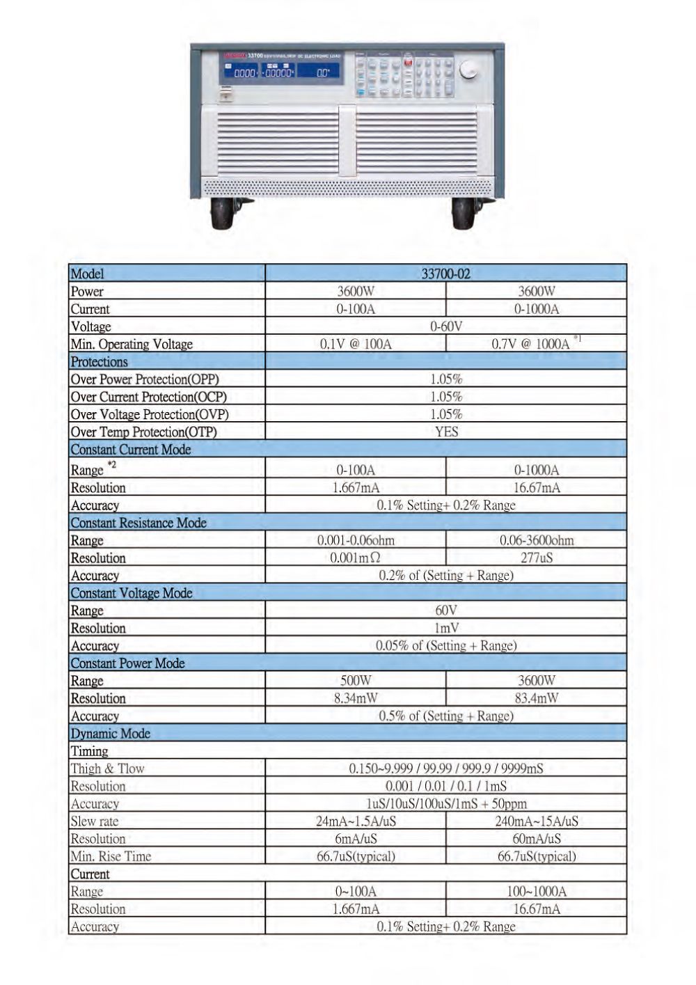 Power : 0 ~ 500W/3600W, ±0.65%
