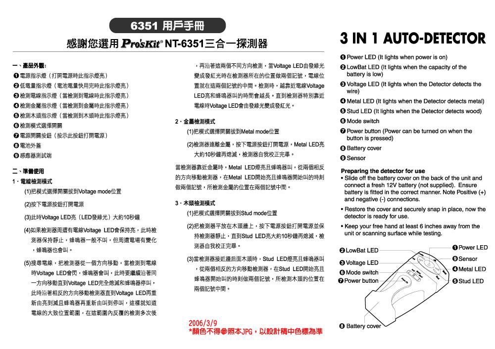 Pro'skit NT-6351 3 In 1 Auto-Detector (Metal/Voltage/Stud Detector) | EMIN.CO.ID