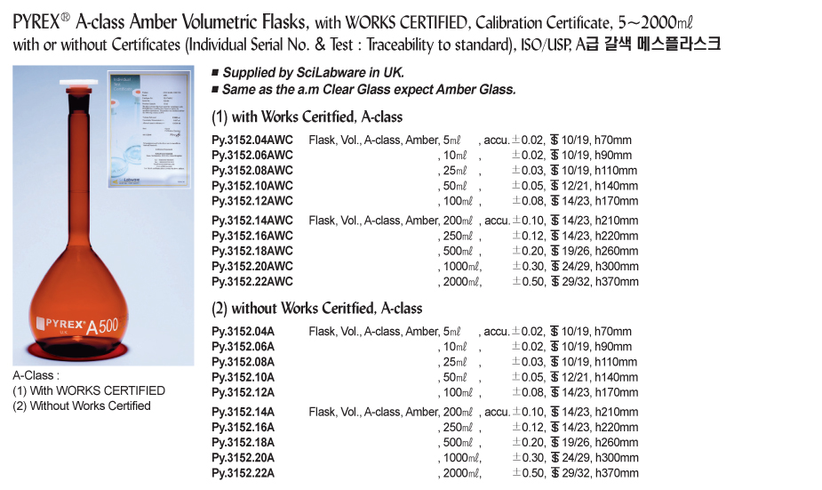 Pyrex Py.3152.20A A-class Amber Volumetric Flask (1000ml) | EMIN.CO.ID
