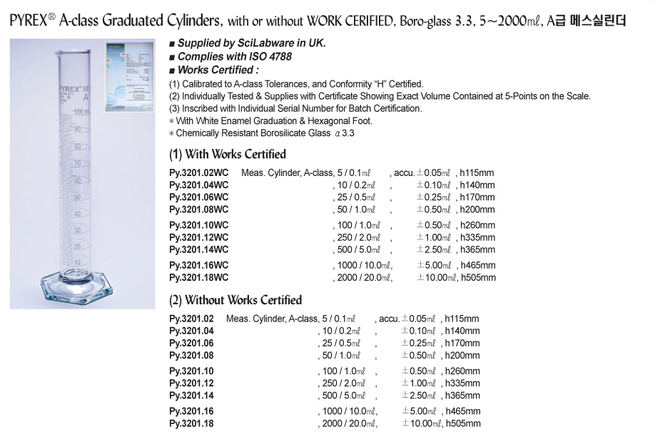 Pyrex Py.3201.12 A-class Graduated Cylinder (250ml) | EMIN.CO.ID