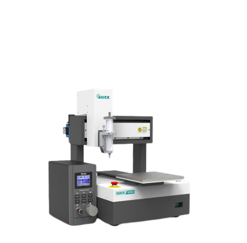Equipped with QUICK 982D precision dispensing controller, using imported high flow precision pressure reducing valve for higher pressure accuracy, faster dispensing; built-in air storage tank to balance the instant pressure fluctuation at opening of valve for stable dispensing accuracy