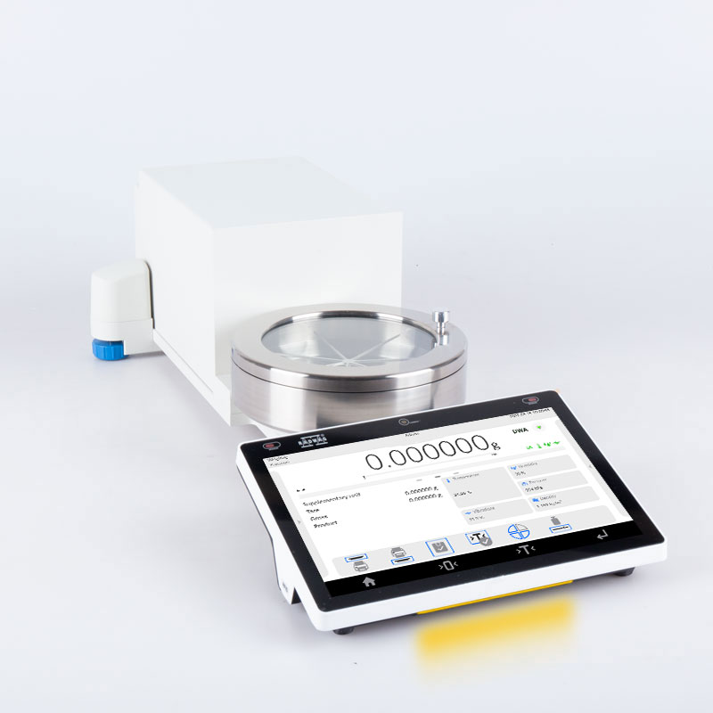 -Delivery components: Microbalance, terminal, weighing pan, weighing pan shield, glass vessel, evaporation ring, glass lid, additional glass lid, glass lid, power supply, pincette, brush, fabric dust cover.