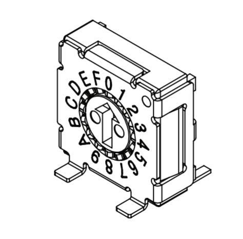 Same Sky (formerly CUI Devices) RDS-16S-7229-A-ASMT-TR DIP Switches Rotary DIP Switch, 7.2 x 7.2 x 2.9 mm, arrow actuator 16 pos, angled SMT,TR