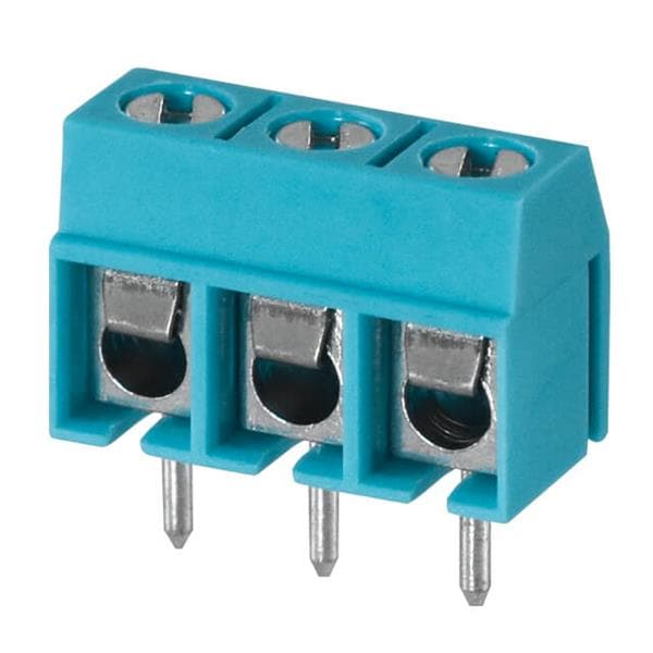 Same Sky (formerly CUI Devices) TB002-500-03BE Fixed Terminal Blocks Terminal block, screw type, 5.00 , horizontal, 3 poles, CUI Blue, slotted screw, PCB mount