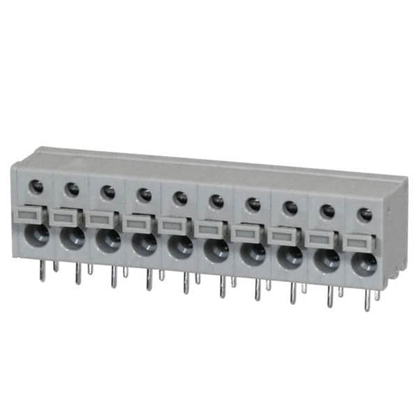 Same Sky (formerly CUI Devices) TBL009-500-10GY-2GY Fixed Terminal Blocks Terminal block, screwless, 5.00, Horizontal, 10, Gray w Gray Button