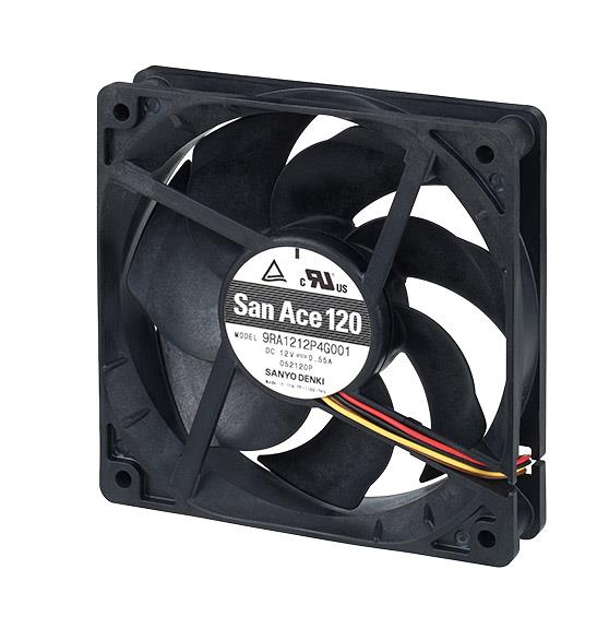 Sanyo Denki 9RA1212M4001 Axial Axial Fan, 120x120x25mm, 12VDC, 63.5CFM, Low Noise, Ribbed, Ball, Wire, Tach | EMIN.CO.ID
