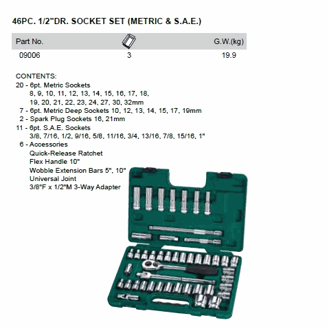 SATA 09006 46PC. 1/2inch DR. SOCKET SET (METRIC & S.A.E.) | EMIN.CO.ID