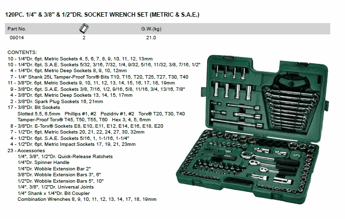 SATA 09014 120PC. 1/4 & 3/8 & 1/2inch DR. SOCKET WRENCH SET (120 chi tiết 1/4 & 3/8 & 1/2inch) | EMIN.CO.ID