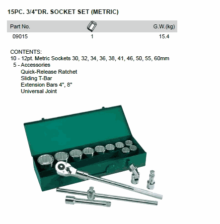 SATA 09015 15PC. 3/4inch DR. SOCKET SET (METRIC) | EMIN.CO.ID