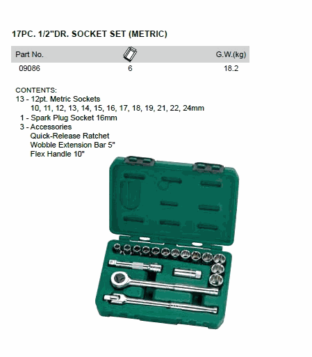 SATA 09086 17PC. 1/2inch DR. SOCKET SET (1/2inch,17 chi tiết) | EMIN.CO.ID