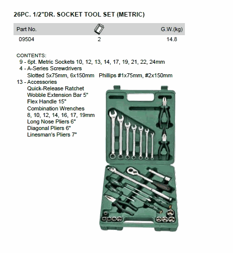SATA 09504 26PC 1/2inch DR SOCKET TOOL SET (METRIC) (1/2inch) | EMIN.CO.ID