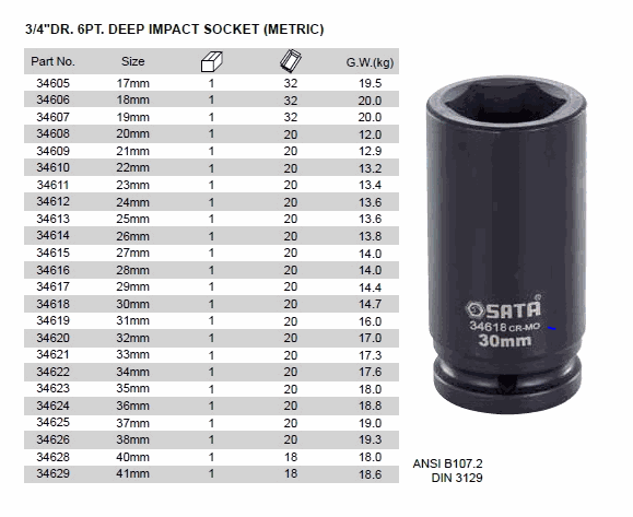 SATA 34622 DEEP IMPACT SOCKET (3/4inch,34mm) | EMIN.CO.ID