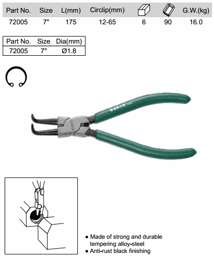 SATA 72005 RING - INTERNAL CLOSE CURVED (7 inch, 12-65 mm) | EMIN.CO.ID