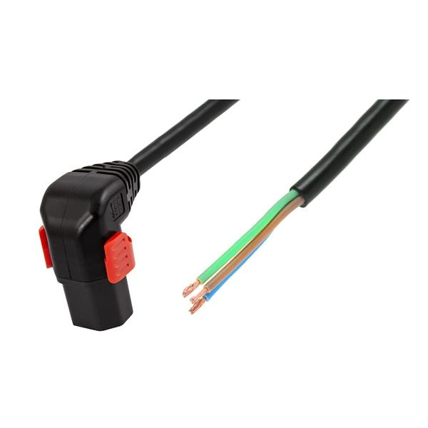 Schaffner IL13P-D-SE-H05-3100-100 AC Power Cord w/Lock C13+ down, Stripped End, H05VV-F, 3x1.00 mm sq., 1 m, black | EMIN.CO.ID