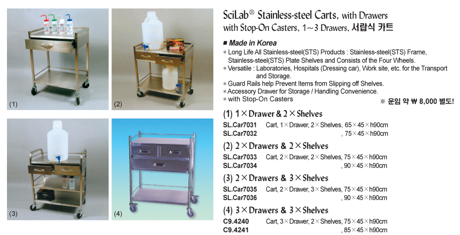 SciLab SL.Car7033 Stainless-steel Cart (2×Drawer & 2×Shelves, 75×45×h90cm) | EMIN.CO.ID