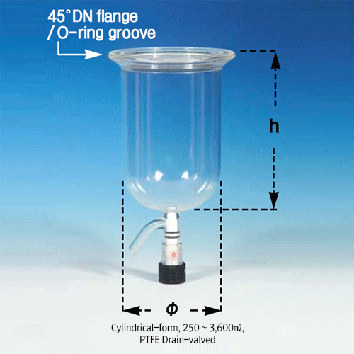 SciLab SL.Re2246 PTFE Drain-valved DURAN-glass Vacu./Pressure Reaction Vessel, DN 200 Vessel, -20,000~21,000(full)㎖. | EMIN.CO.ID