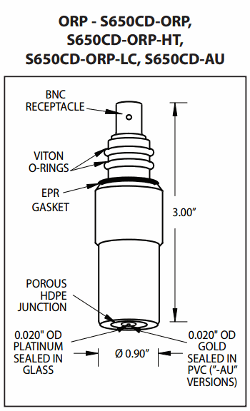 SENSOREX S650CD-ORP ORP Electrode (+/- 2000mV, flat) | EMIN.CO.ID