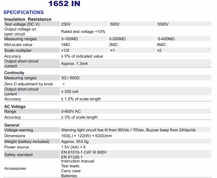 Measuring ranges 0-100MΩ 0-200MΩ 0-400MΩ