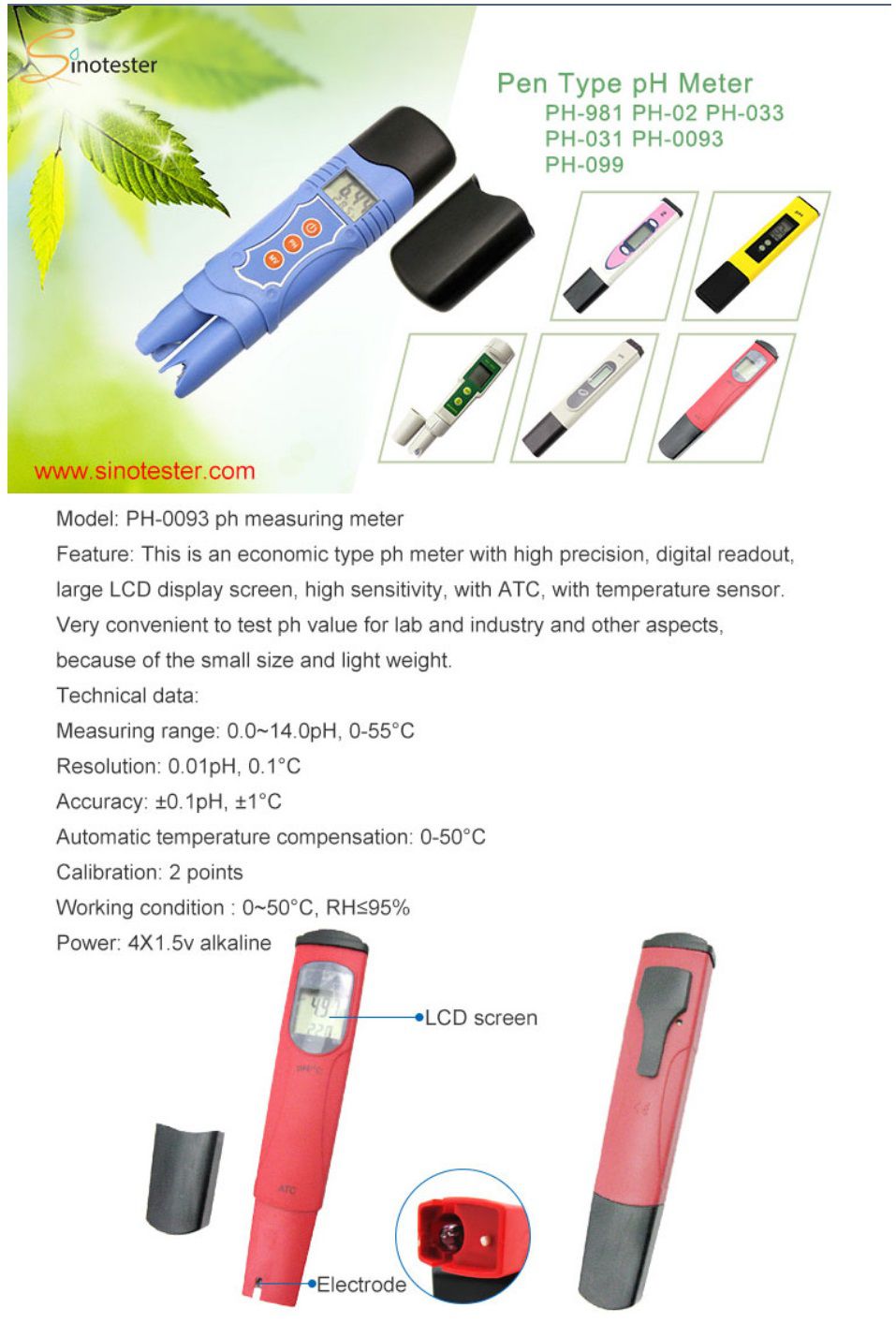 Sinotester PH-0093 Pen Type pH Meter (0.0~14.0 pH) | EMIN.CO.ID