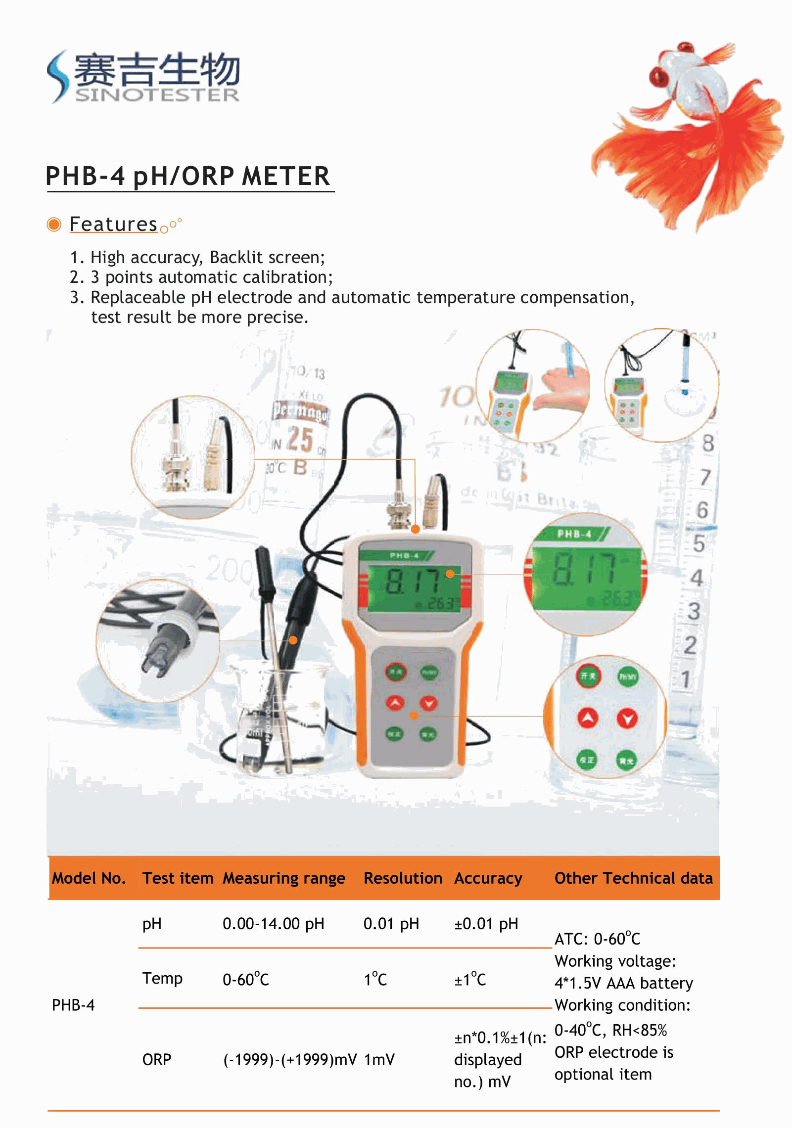 Sinotester PHB-4 Pen type pH meter (0.00~14.00pH) | EMIN.CO.ID