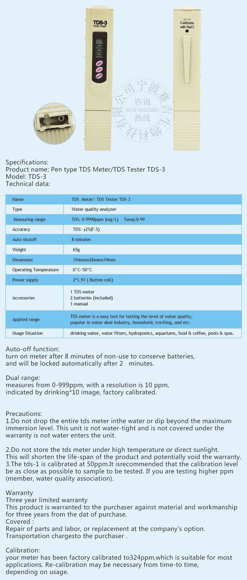 Sinotester TDS-3 TDS Meter (0~9990ppm) | EMIN.CO.ID