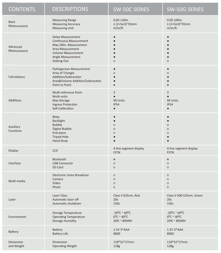 Measuring Accuracy: ±(2+5xD10-5)mm