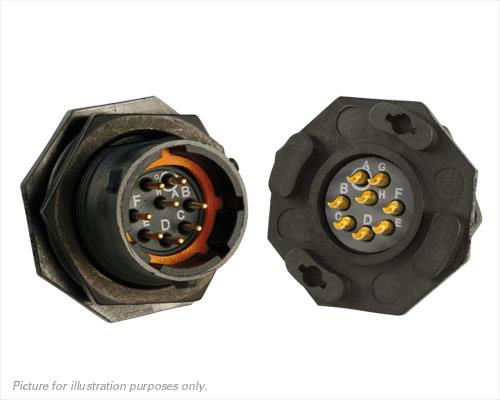 Eaton Souriau-Sunbank UTS712E8PX Receptacles Plastic jam nut receptacle, without backshell, with 8 male solder contacts, IP68/69K in unmated conditions, keying X
