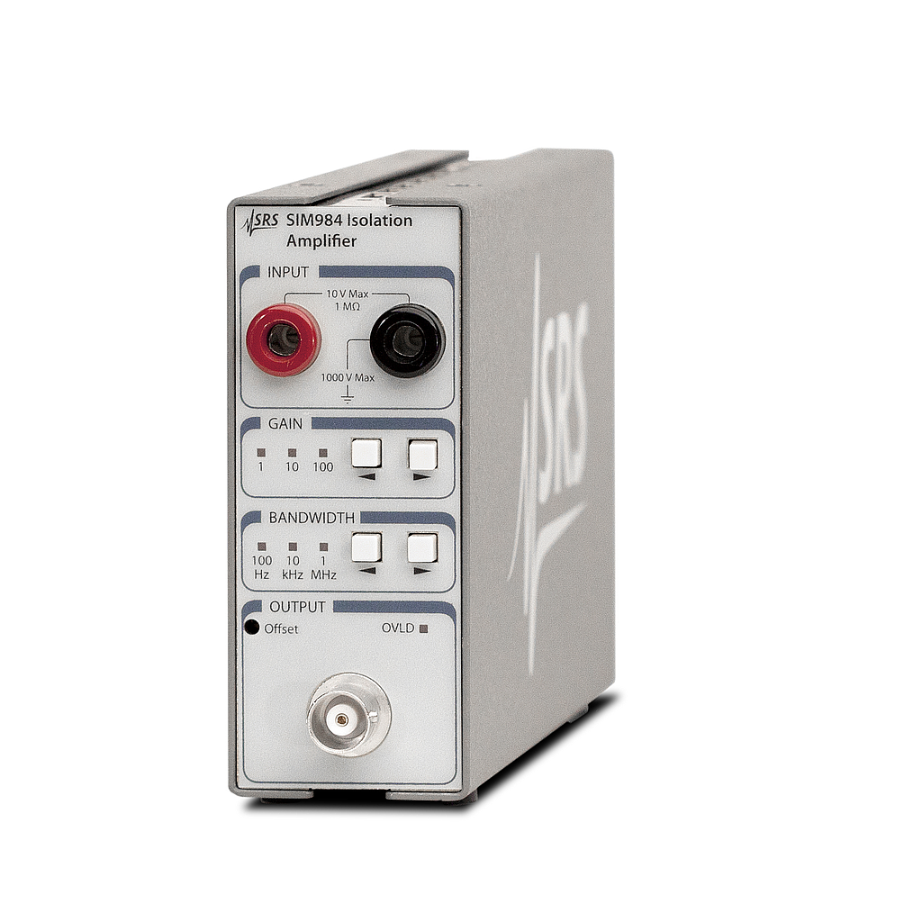 Power: Power supplied by the SIM900 Mainframe, or optionally by a user-supplied DC power supply (±15 V, +5 V, and +24 V).