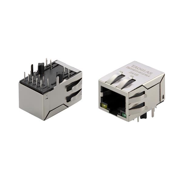 Taoglas TMJG4813-8KGDNL4 RJ45 Connector RJ45 ICM, 1X1, 1G Base-T, Short Body, Tab Down, 30 micro Gold, LED, Shielded EMI Finger, Industrial grade