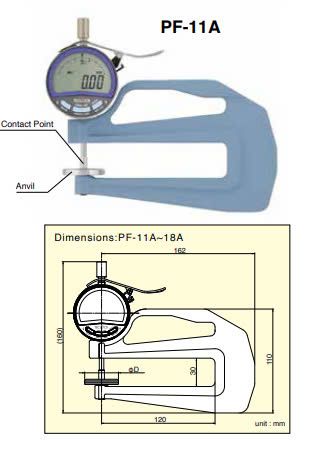 TECLOCK PF-11A Constant Pressured Thickness Measuring Instrument (12mm / 0.01mm) | EMIN.CO.ID