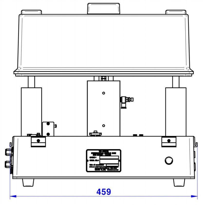 - Outside: 459(W) x 300(D) x 300(H) mm, lid closed. 449(H) mm, lid open.