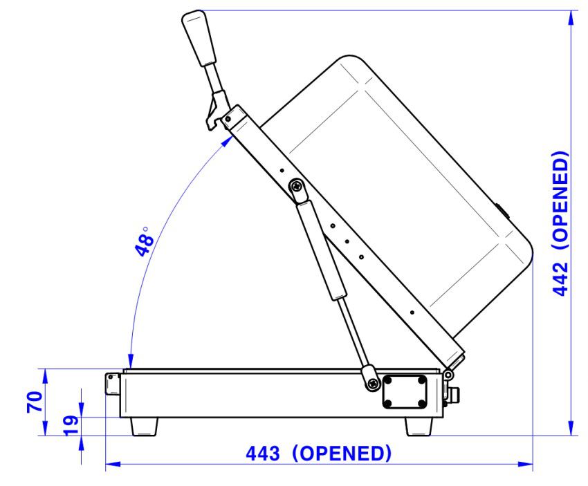 - Outside : 309(W) x 473(D) x 221(H) mm, lid closed. 442(H) mm, lid open.