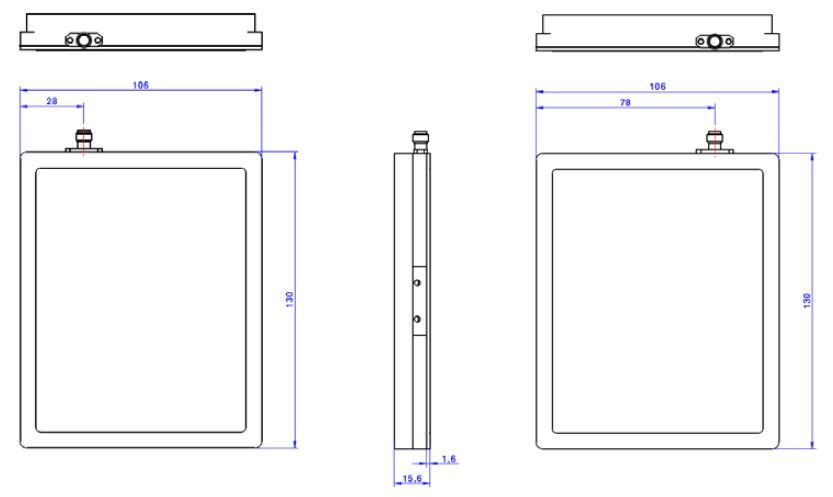 Dimension: 106 (W) x 130 (D) x 15.6 (H) mm
