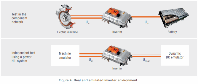 Inverters are essential components for numerous applications because they convert electrical voltage bidirectionally. Traction inverters convert DC voltage from a battery to AC voltage for an electric machine. This functionality makes inverters an important component in electromobility, as well as numerous industrial applications. Quality, durability, and safety requirements are demanding in the automotive sector. All components are subject to stringent testing throughout development and production. The earlier tests can be performed during the development phase, the more efficient the next steps are. Comprehensive test scenarios and independent component testing can reduce development expenses and speed innovation (Figure 4).