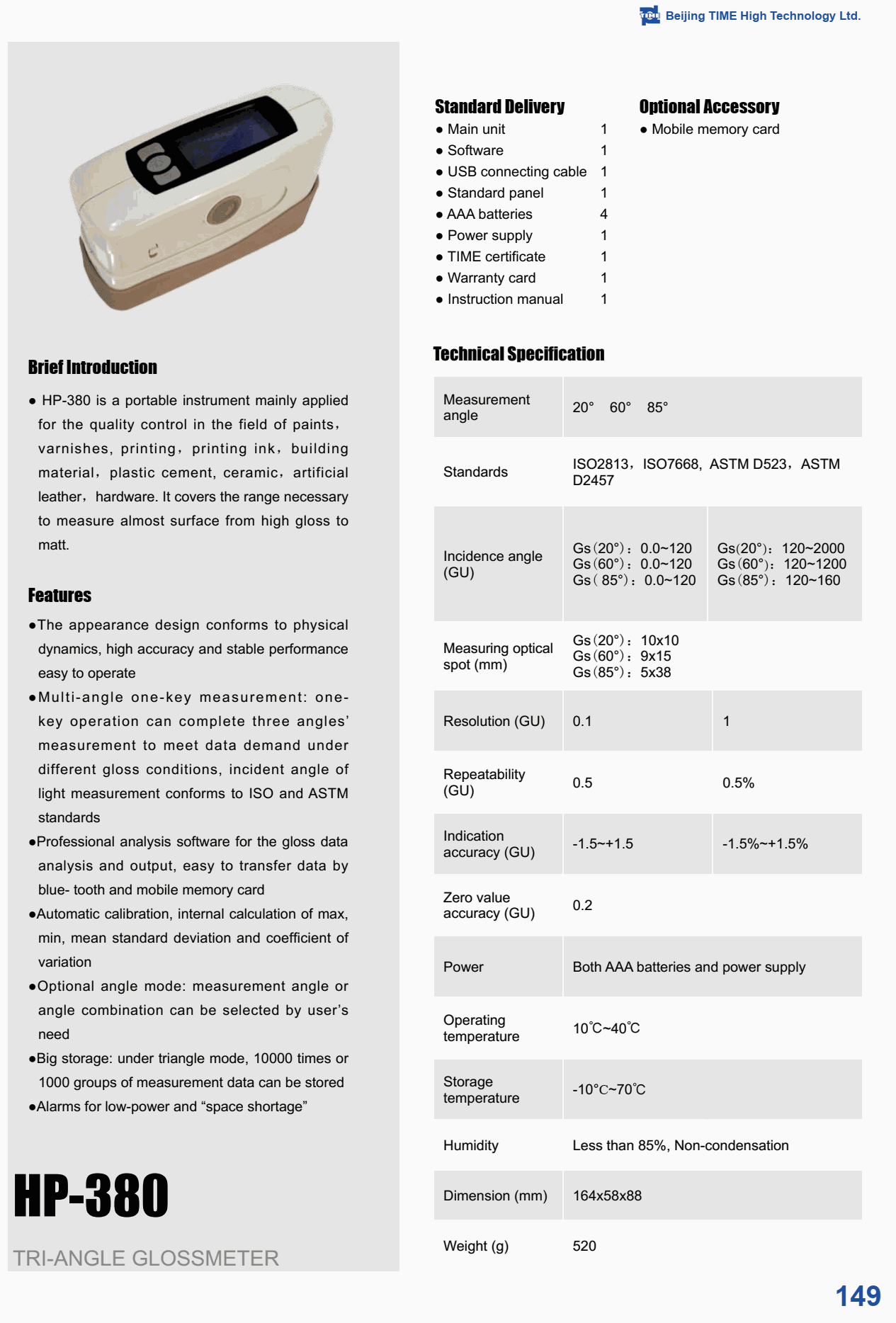 Standard: ISO2813, ISO7668, ASTM D523, ASTM