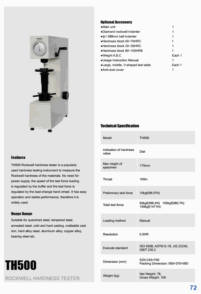 Execute standard: ISO 6508, ASTM E-18, jIS Z2245, GB/T 230.2