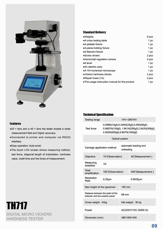 Testing range: 1HV~2967HV