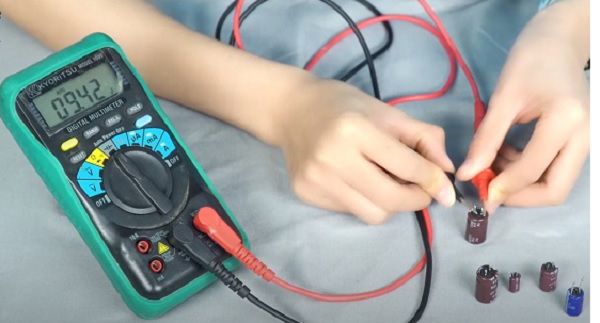 Step 2: Insert the black probe into the COM port, the red probe into the (+) port.