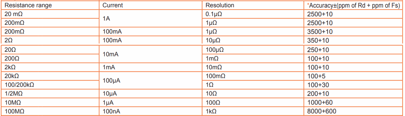 Measurement range: 0.1μΩ~110MΩ