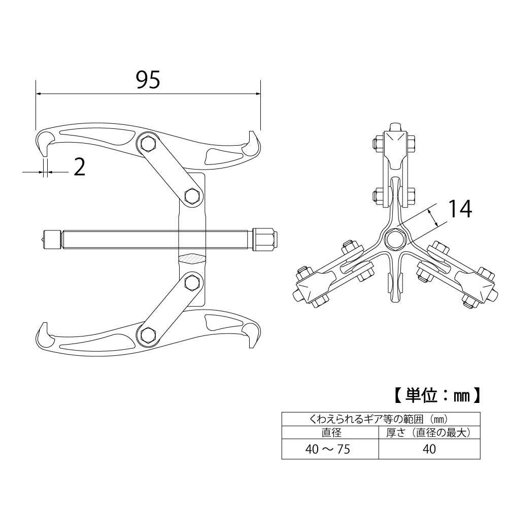 TOP Kogyo GP3-75 Gear Puller (3-jaws) (40~75mm) | EMIN.CO.ID