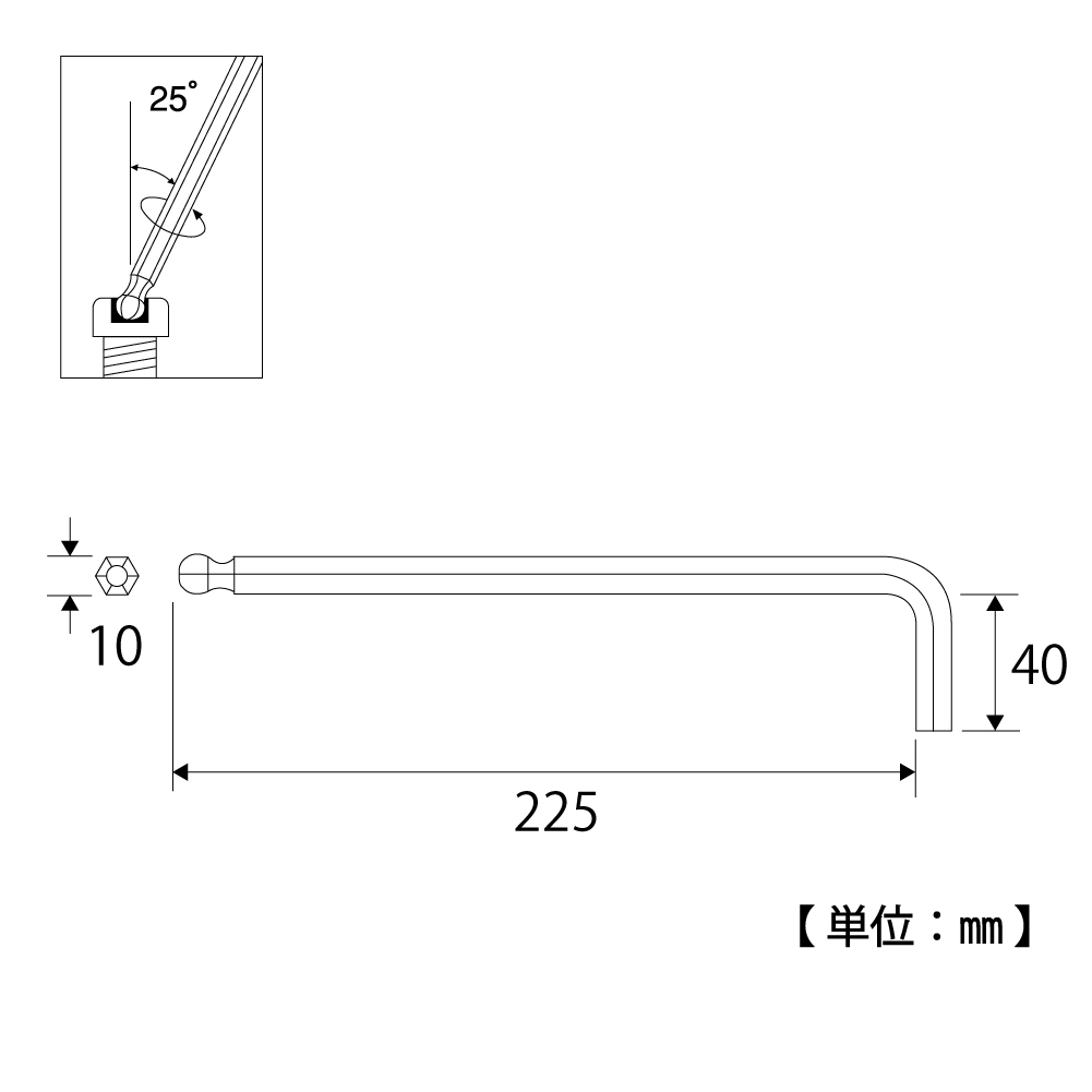 TOP Kogyo HBL-100 Ball point wrench long type (10mm) | EMIN.CO.ID