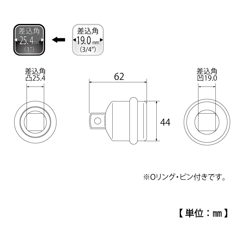 TOP Kogyo PAD-68 Impact Socket Adapter (62mm) | EMIN.CO.ID