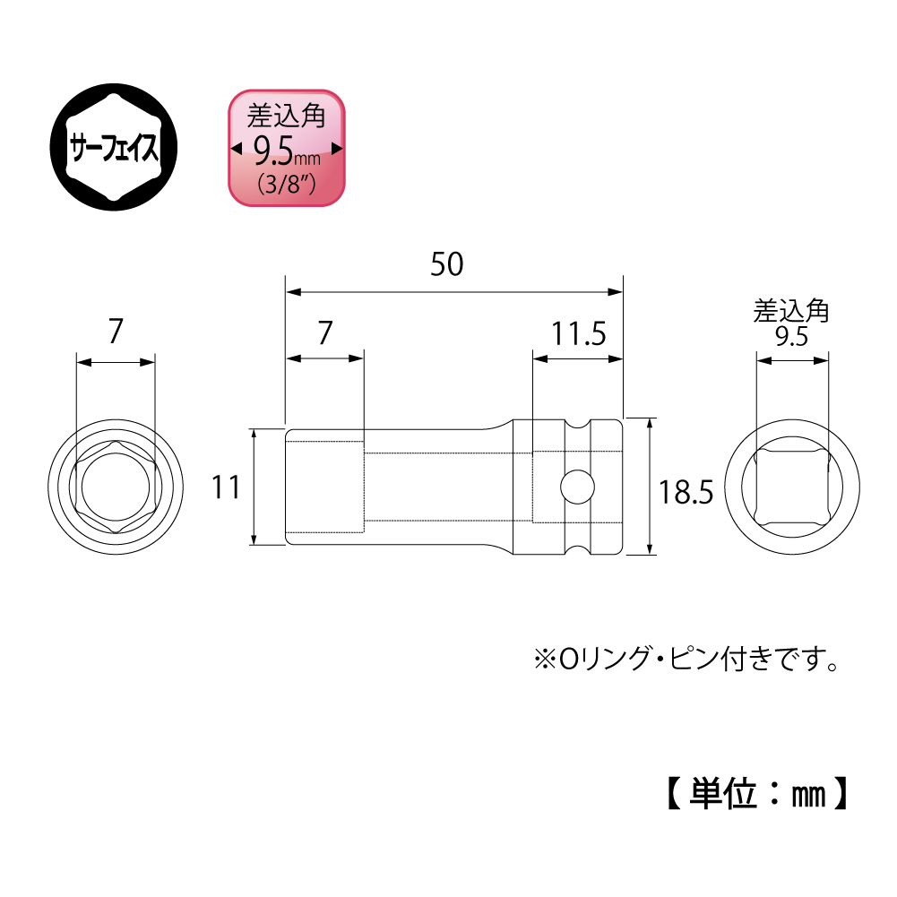 TOP Kogyo PT-307L Impact Deep Socket (3/8'', 7mm) | EMIN.CO.ID