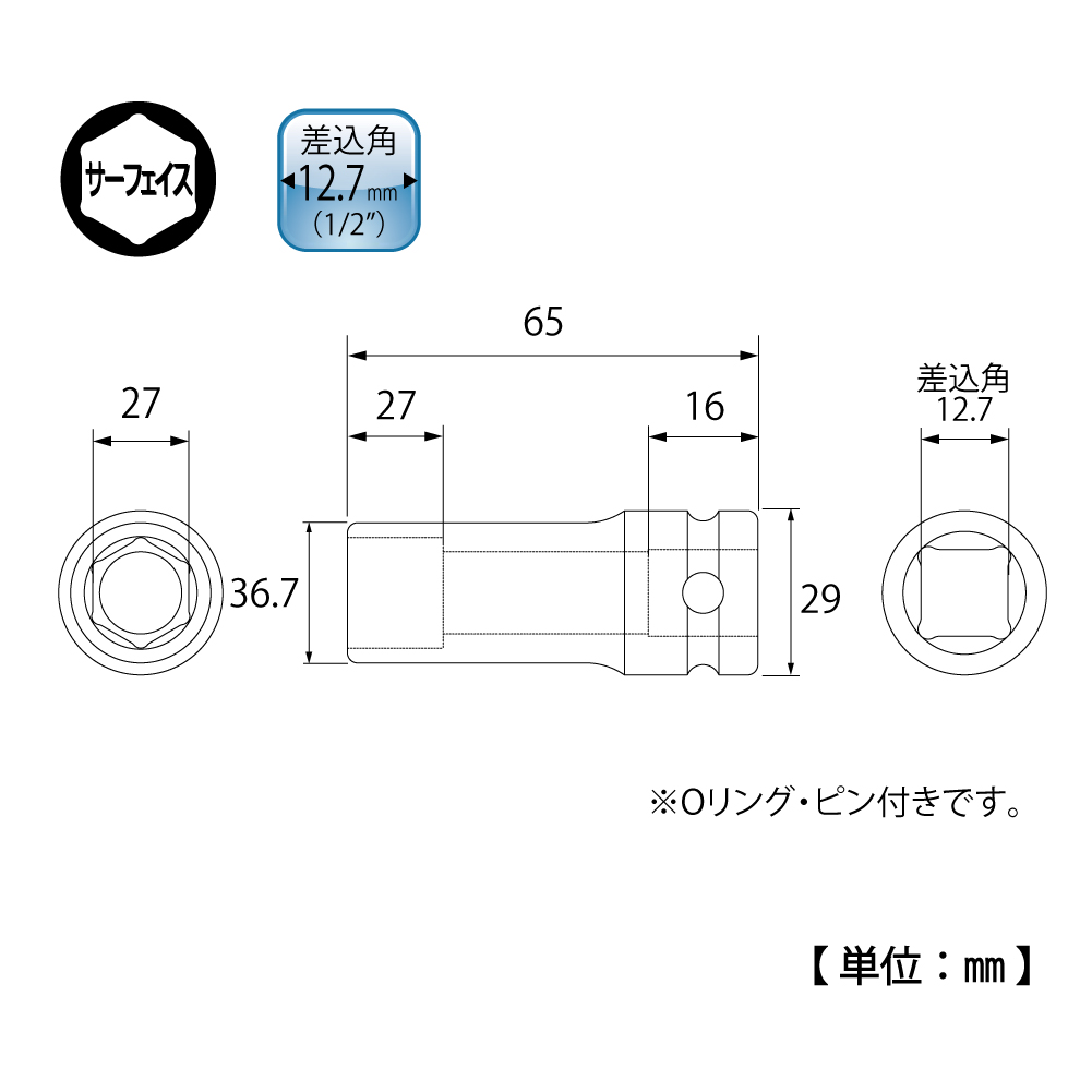 TOP Kogyo PT-427L Impact Deep Socket (1/2'', 27mm) | EMIN.CO.ID