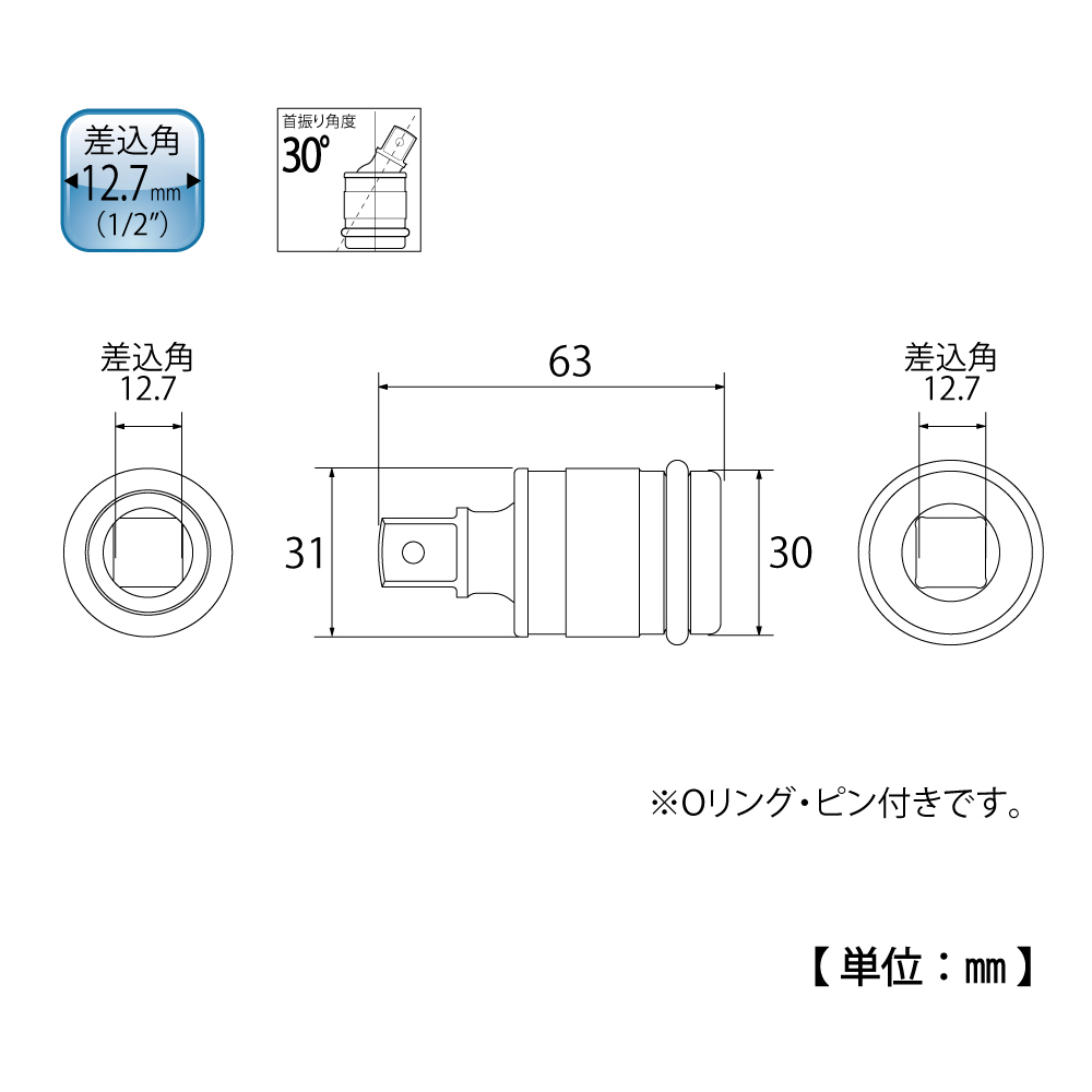 TOP Kogyo PUN-4S Impact Universal Joint (1/2'', 63mm) | EMIN.CO.ID