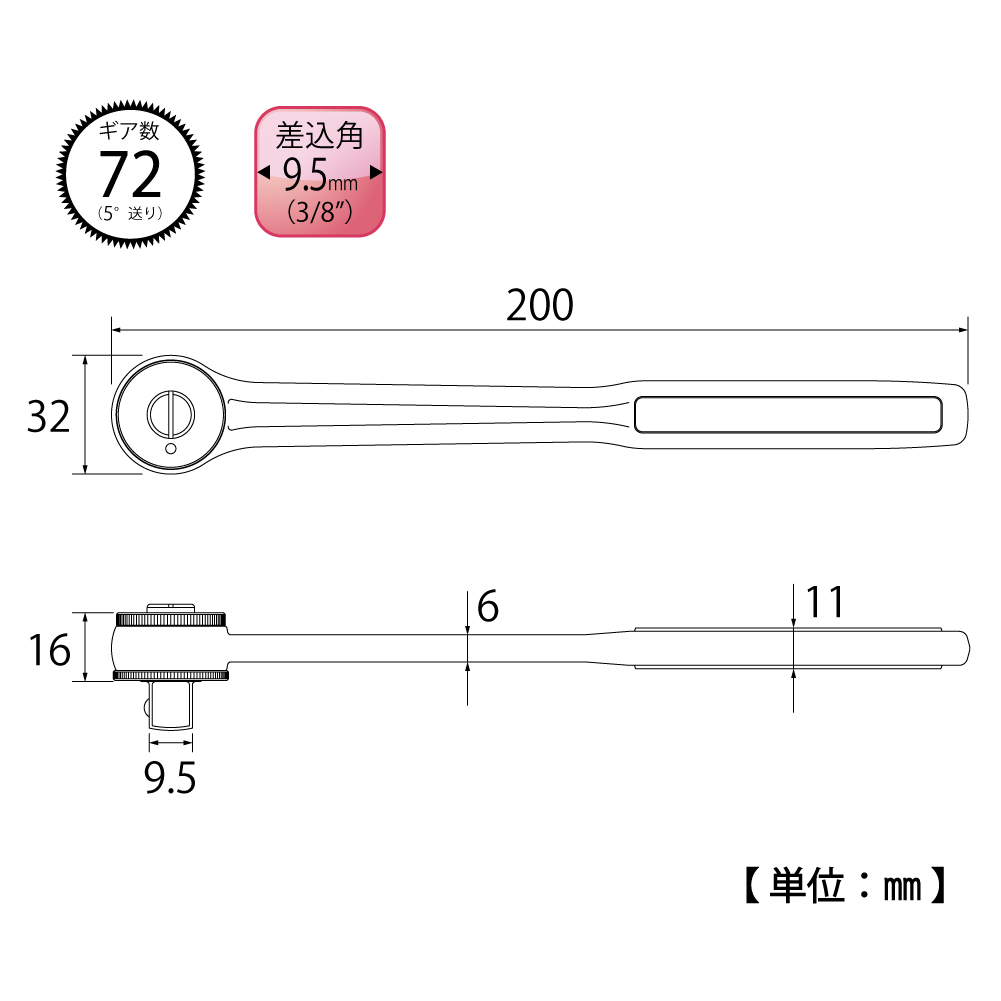 TOP Kogyo RH-3 Ratchet Handle (3/8", 200mm) | EMIN.CO.ID