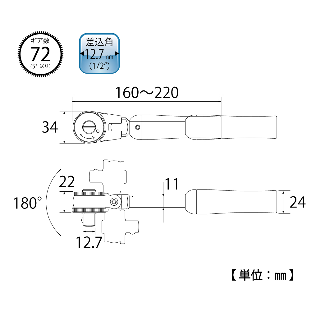TOP Kogyo SR-4 Swivel And Telescopic Ratchet Handle Set (1/2") | EMIN.CO.ID